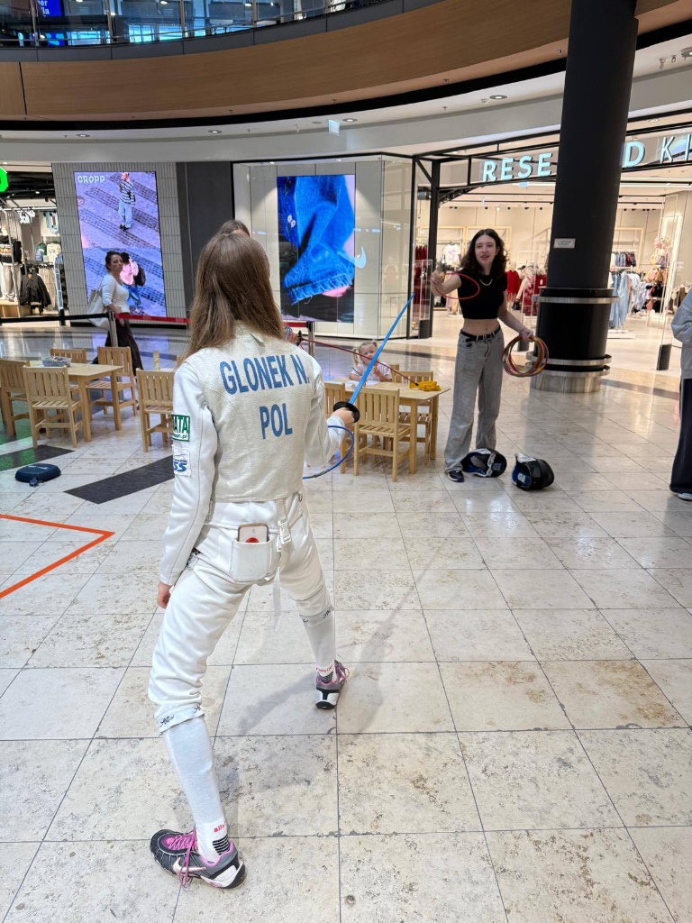 Nasi wspaniali nauczyciele – trenerzy oraz uczniowie klasy 8C przenieśli odwiedzających w niesamowity świat fechtunku.