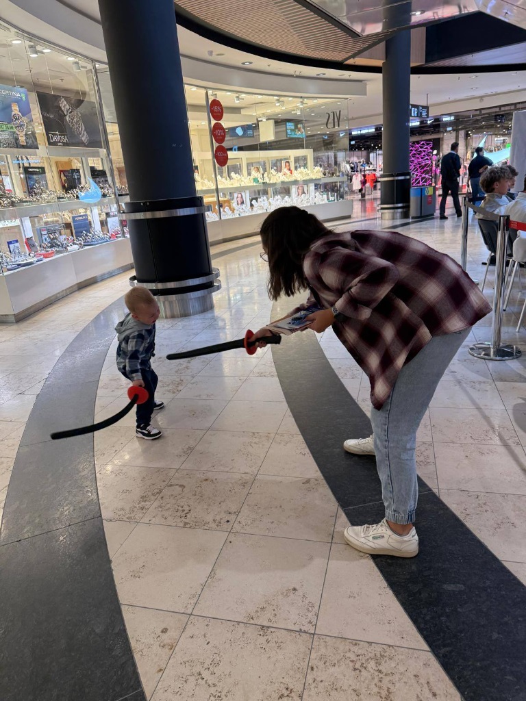 , najmłodsi łapali kółeczka na floret i kolorowali rysunki z szermierzami