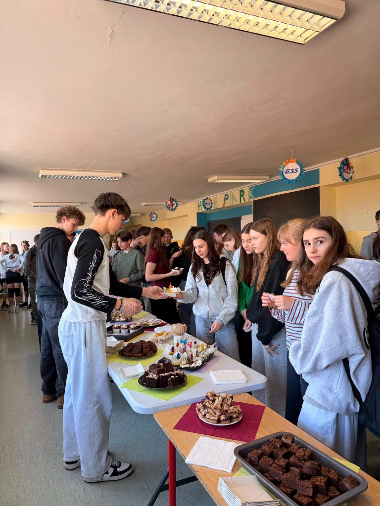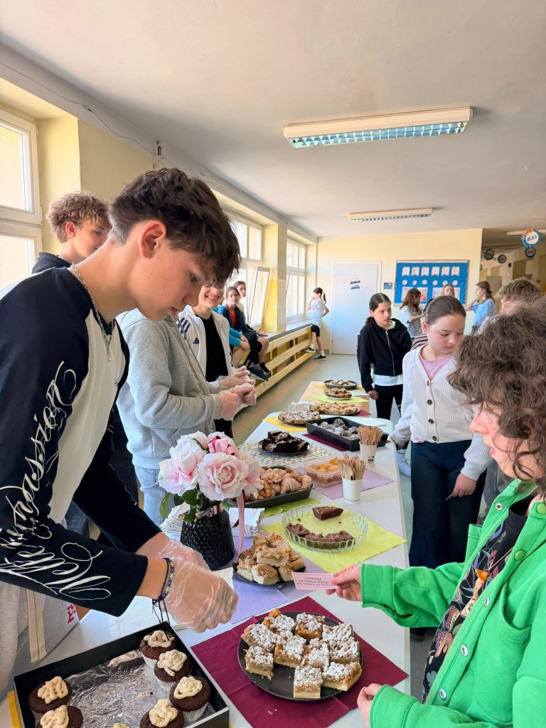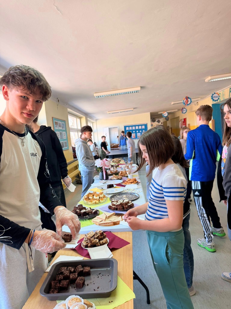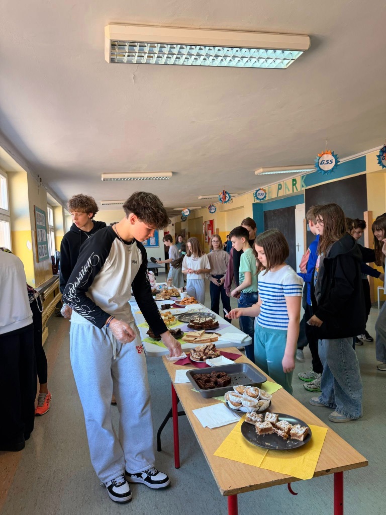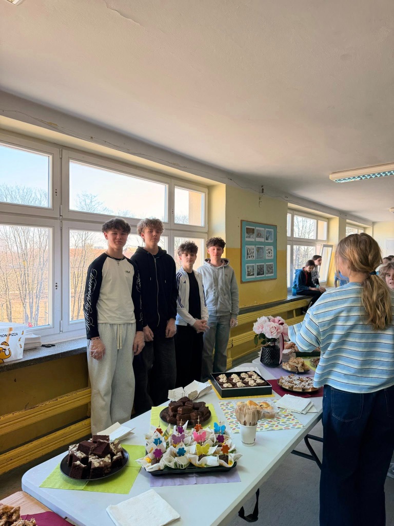 Z inicjatywy Samorządu Uczniowskiego nasi niezastąpieni chłopacy stanęli na wysokości zadania i… z okazji Dnia Kobiet przygotowali wyjątkowy kiermasz ciast dla uczennic z klas 4-8 —słodkości wystarczyło także dla Panów