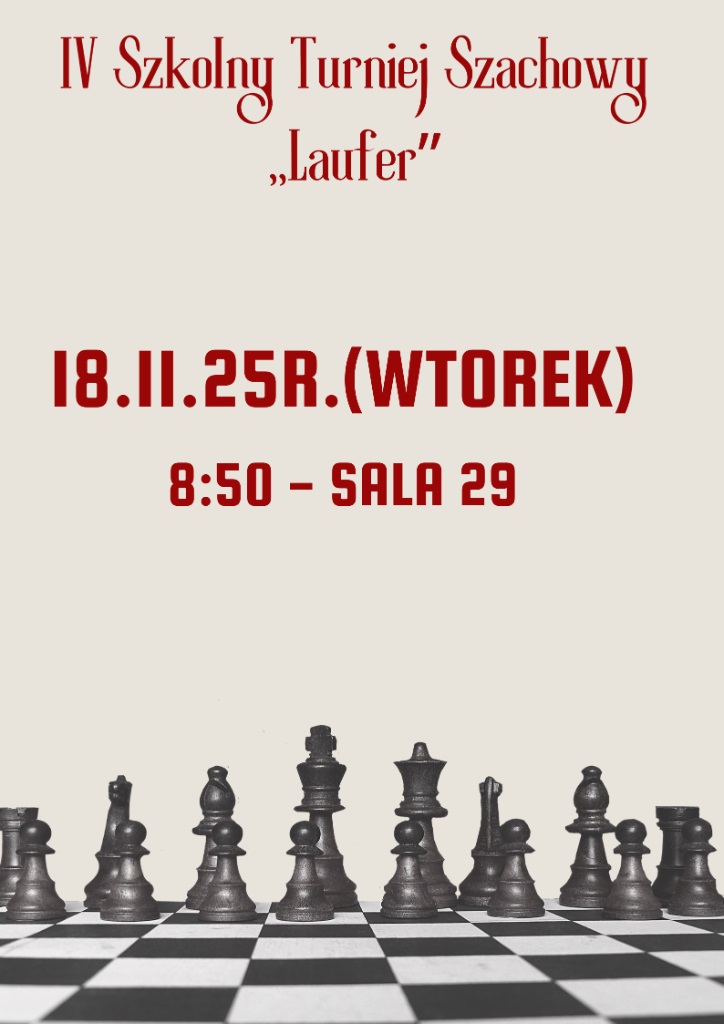 Turniej szachowy odbędzie się w dniu : 18.11.2024r - godz. 8:50