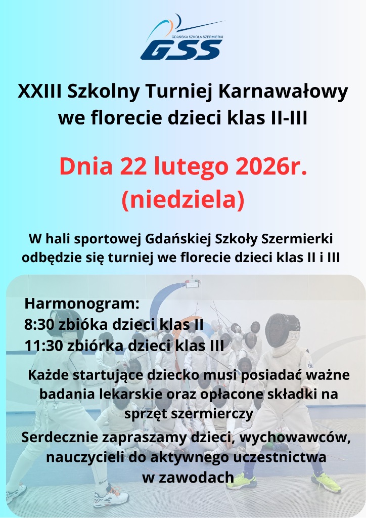 XXIII Szkolny Turniej Karnawałowy we florecie dzieci klas II i III