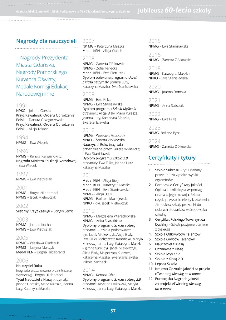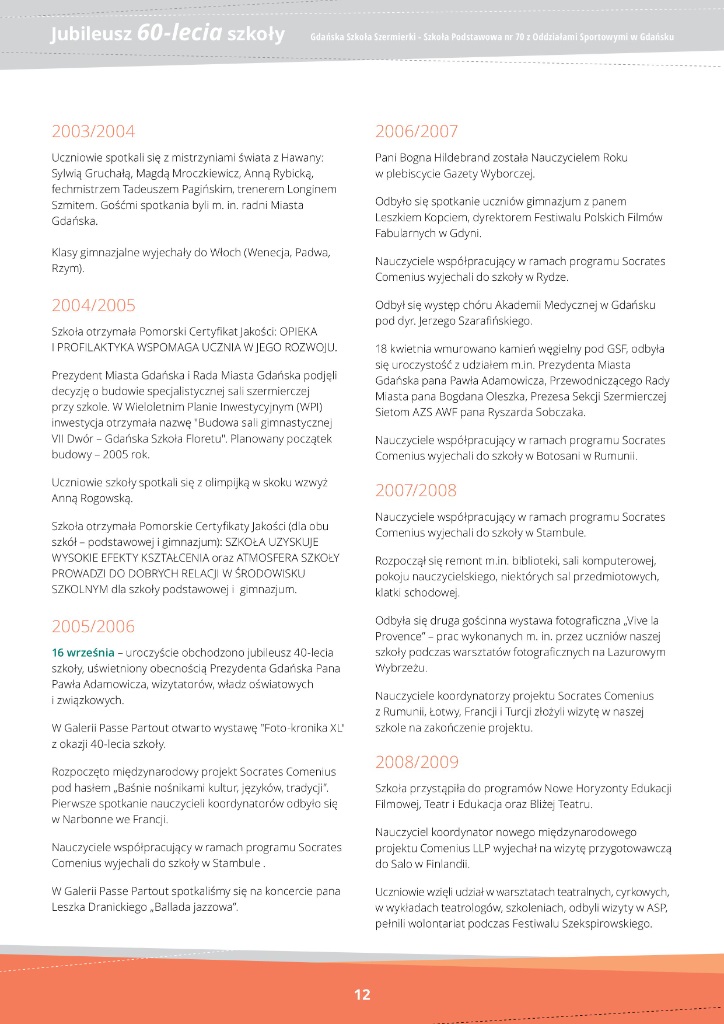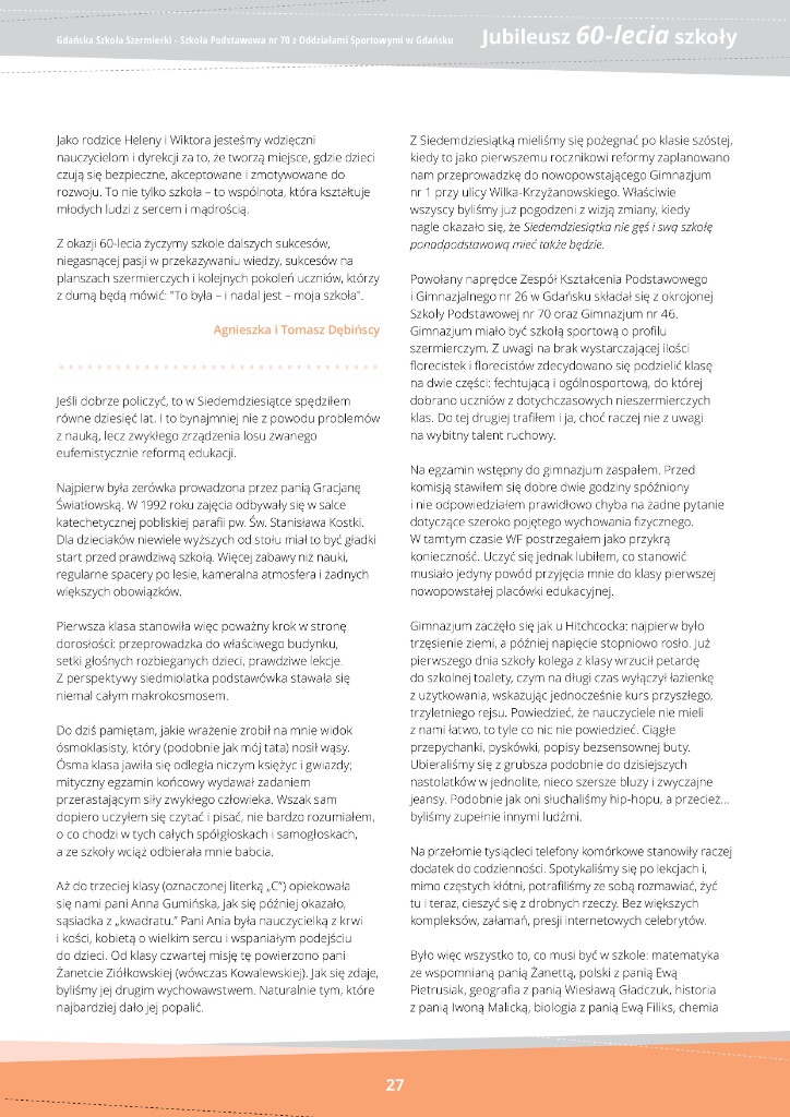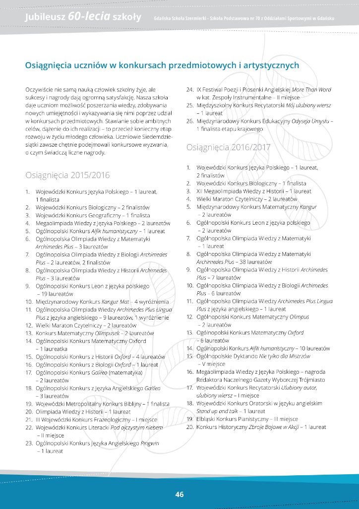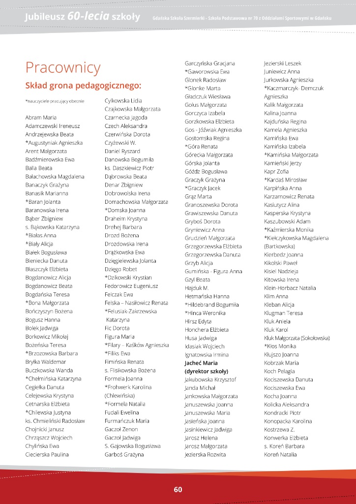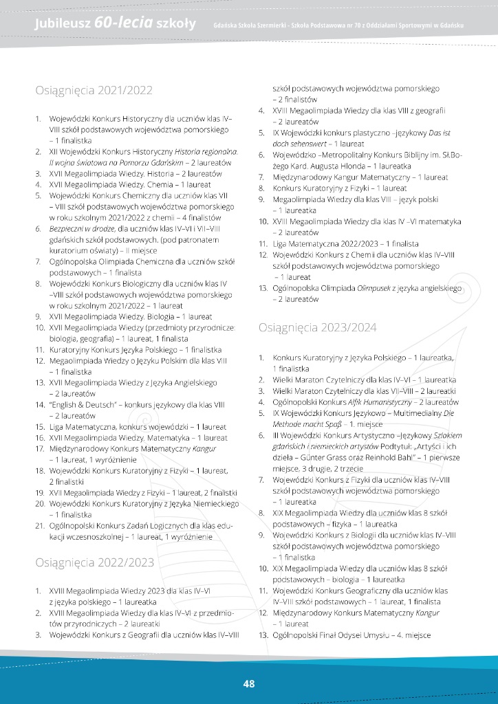 Jubileusz 60-lecie - Szkoła Podstawowa nr 70 z Oddziałami Sportowymi