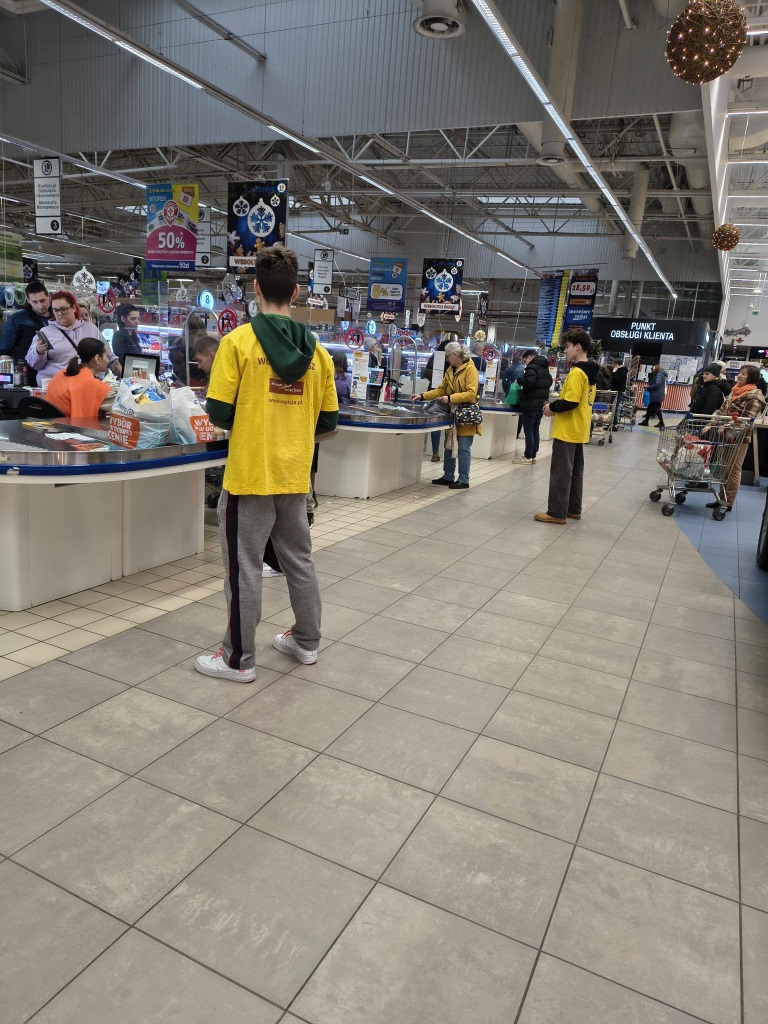 W dniu 13.12.2025r. uczniowie naszej szkoły wzięli udział w akcji charytatywnej na rzecz Hospicjum im. ks. E. Dutkiewicza SAC. (#podarujurlop, #fundajahospicyjna)